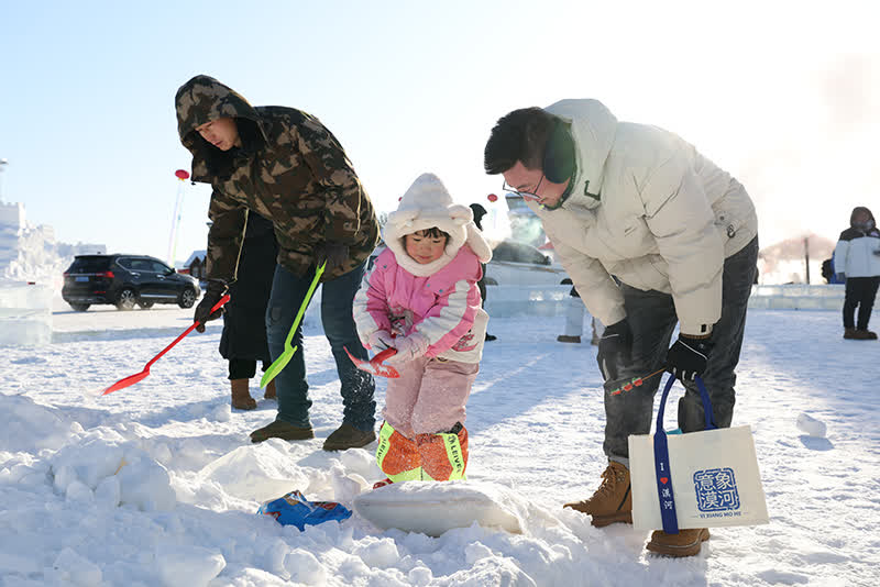 活動設有(yǒu)美食、非(fei)遺、文(wén)創、招商(shang)推介等(deng)區域(yu),遊客們在(zai)體驗冰上套圈、雪(xuě)地尋寶、雪(xuě)地拔河賽等(deng)冰雪(xuě)趣味項目(mu)的(de)同時,還能(néng)品(pin)嘗燉江(jiang)魚、燉大(da)鵝、煮餃子(zi)、凍梨、凍柿子(zi)等(deng)特色美食,欣賞樺樹皮手工(gong)藝品(pin)。「在(zai)這裏玩特別快樂,剛好還遇見了(le)冬至文(wén)化節,感覺東北文(wén)化特別濃,非(fei)常開心。」河南(nan)遊客谷瑩瑩說。